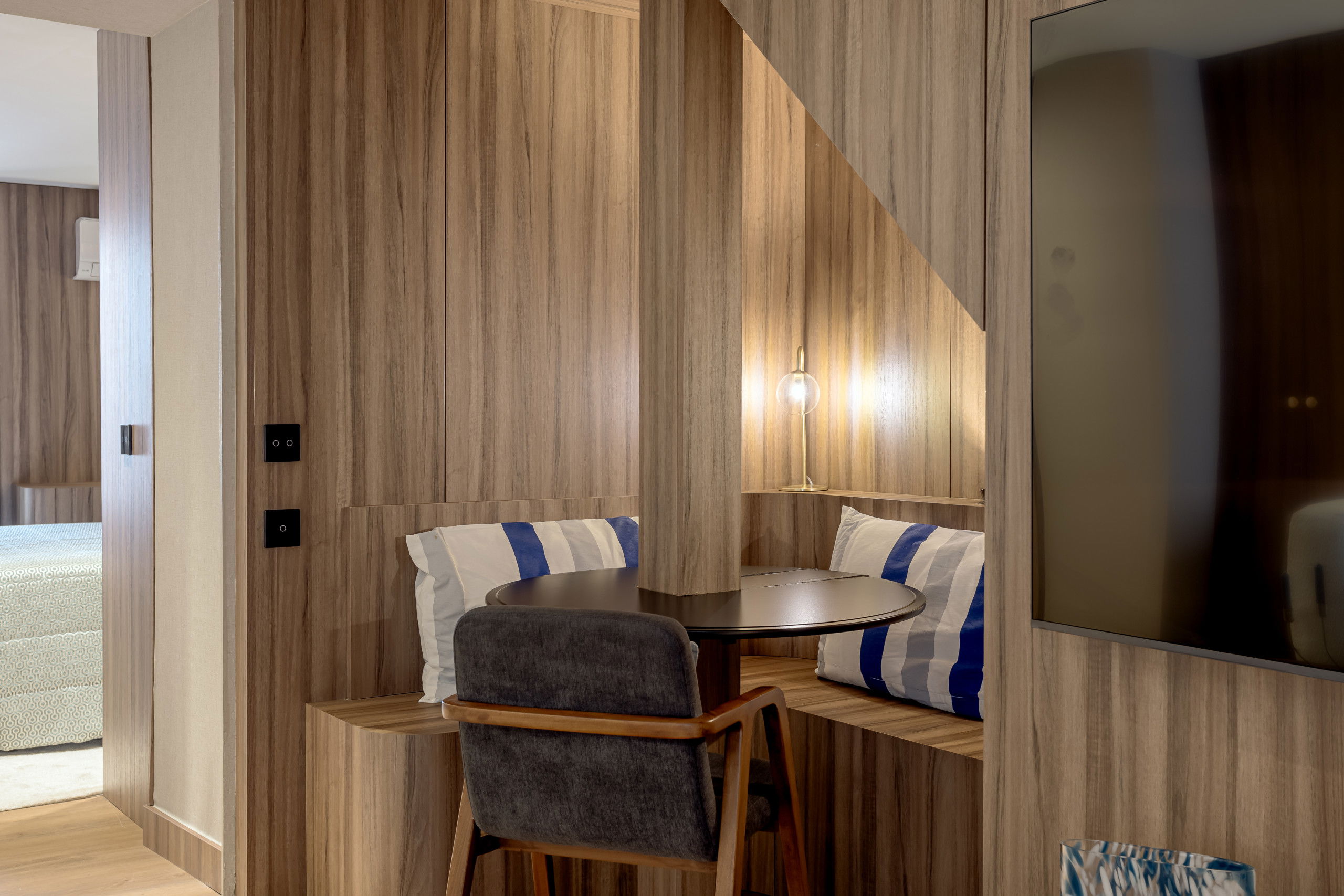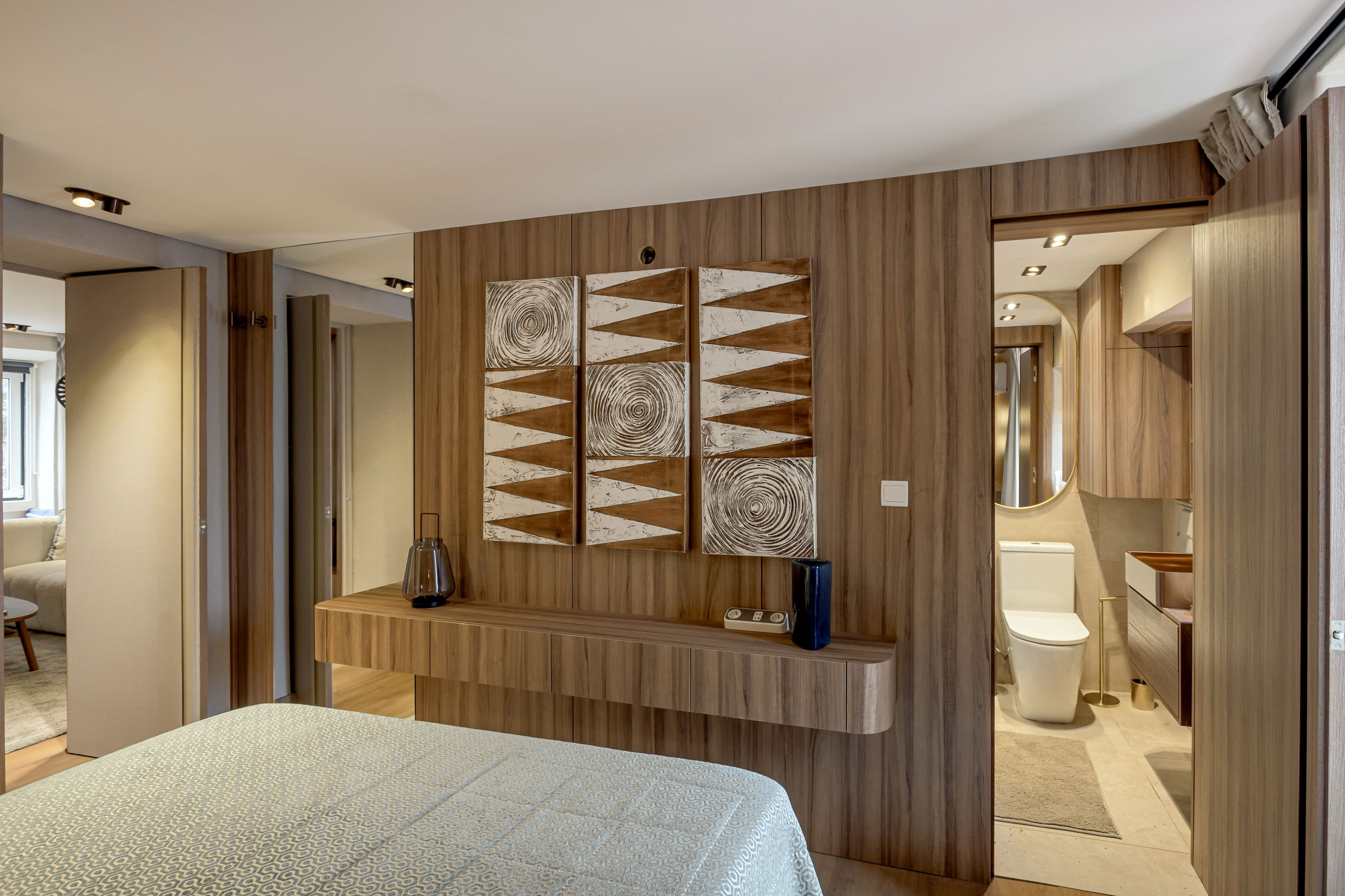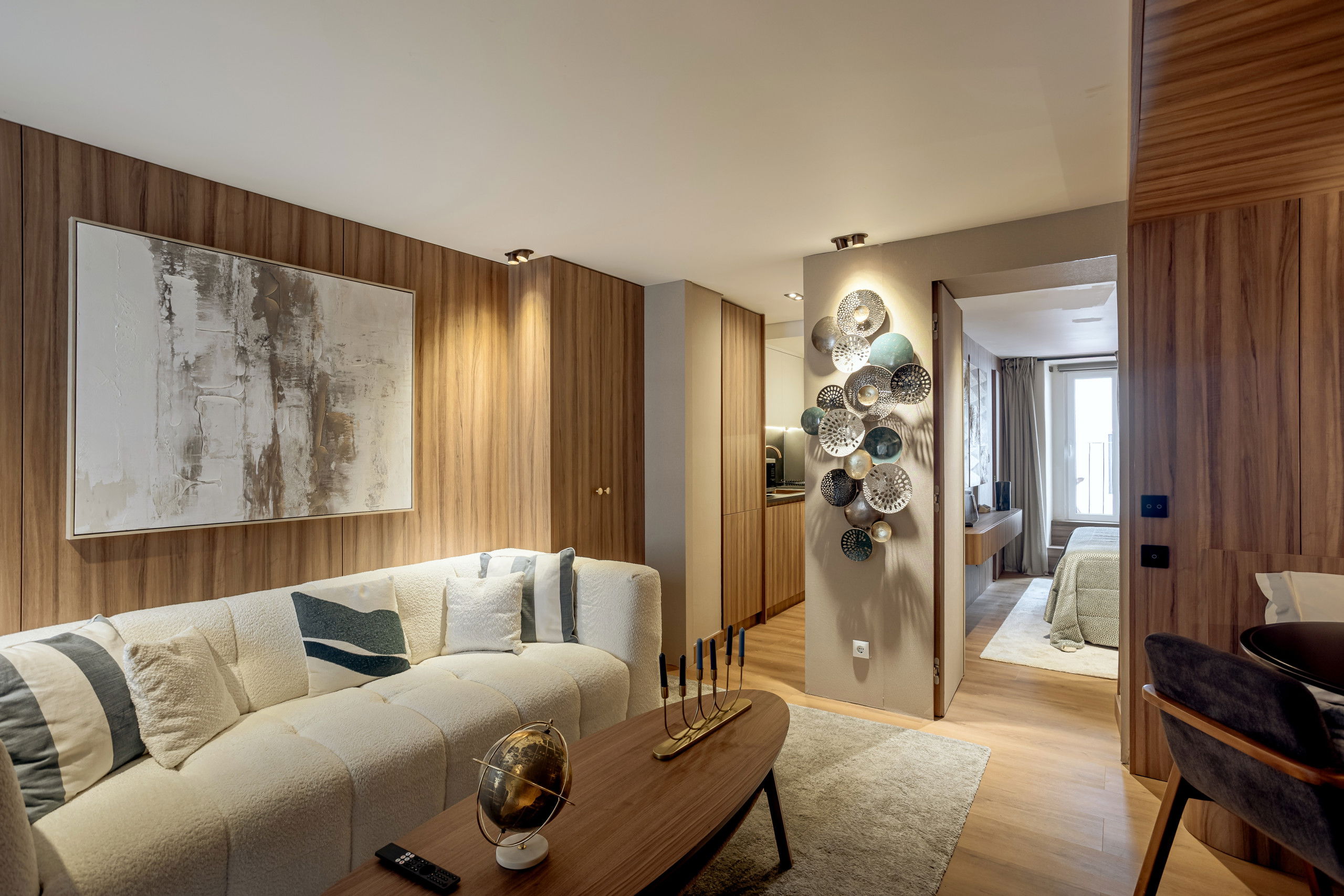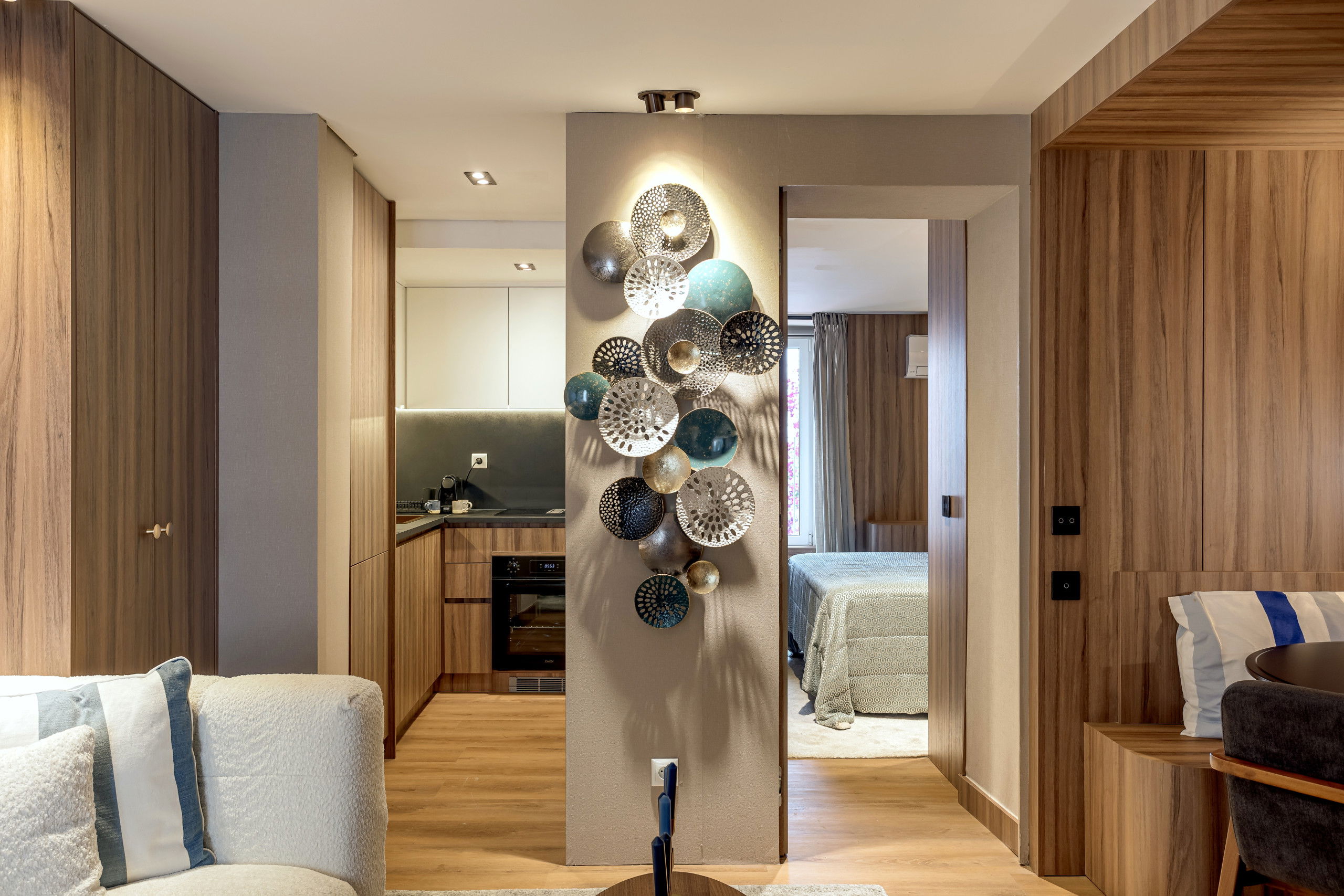 Cet appartement douillet de 35m² offre une chambre avec un lit double confortable, idéal pour se reposer après une journée d'exploration dans la ville. La luminosité et le design moderne créent un environnement relaxant et fonctionnel.