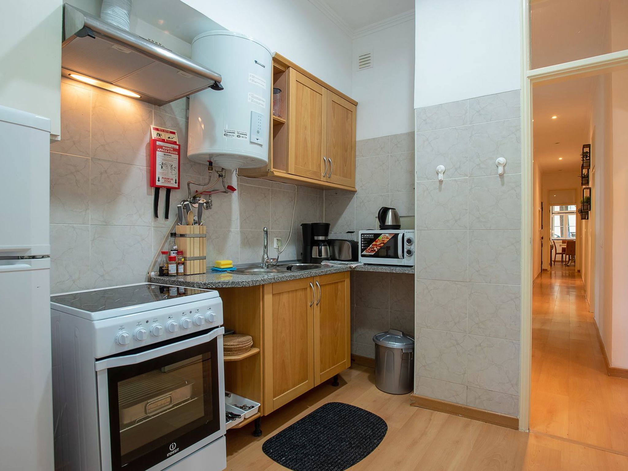 Inside, the apartment boasts three spacious bedrooms and two well-appointed bathrooms, ensuring ample space and privacy for all guests. The presence of three fans across the rooms keeps the environment pleasantly cool, making it a comfortable retreat after a day of exploration. For those who prefer to dine in, the kitchen comes fully equipped with a filter coffee machine, dishwasher, electric kettle, and a washing machine for exclusive use - providing all the necessities for a hassle-free stay.